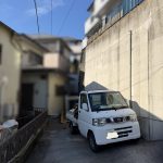 屋根と並行に置かれている木材は桟木(さんぎ)といい、瓦はこの桟木に引っ掛けて釘で固定されています。桟木も撤去し、屋根上の土埃等掃除を行い、瓦降ろしの作業は終了です。
