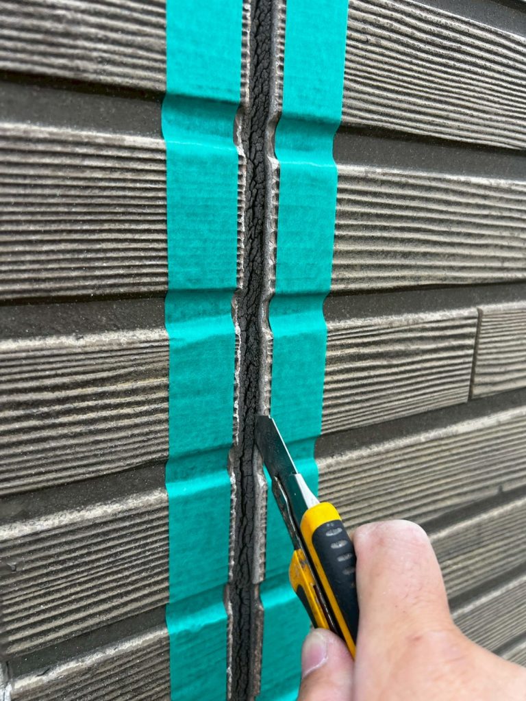まず、カッターで古いコーキングに切り込みを入れ、剥がします。
