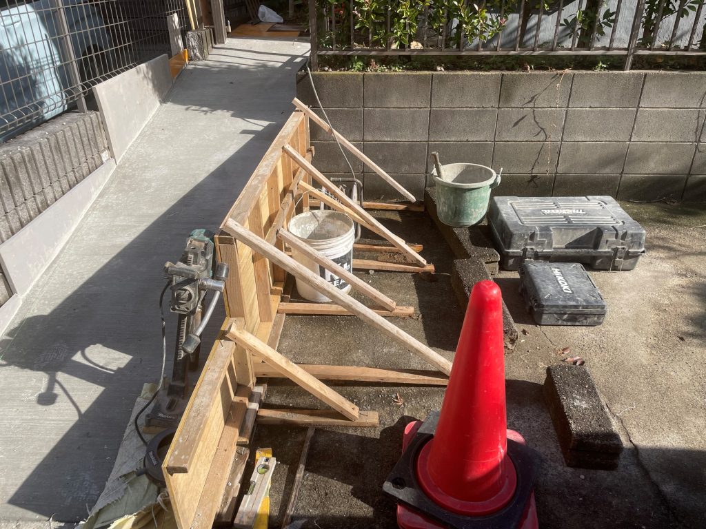 スロープはコンクリートを打設して作り上げますが、強度を高めるためにも打設前の準備が重要になってきます。それでは、段差をコンクリートで埋めてスロープにするリフォームを行っていきます。